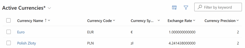 Currencies in Dataverse