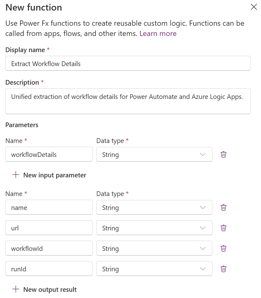 That’s when I decided to build a Dataverse Function. It parses the workflow metadata and returns a normalized set of values – same structure, same fields, every time.